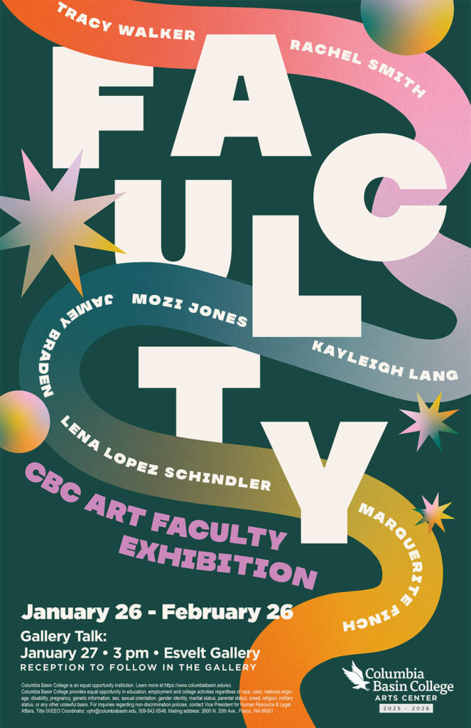 The Esvelt Gallery is proud to present the work of the Columbia Basin College Art Department faculty in the annual Art Faculty Exhibition. The exhibition runs from January 26 – February 26,